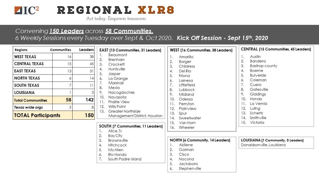 UT Austin’s IC² Institute launched the Regional XLR8 program September 15th as part of its Regional Economic Recovery Initiative. The initiative grew as a response to the COVID-19 crisis and includes multiple components.