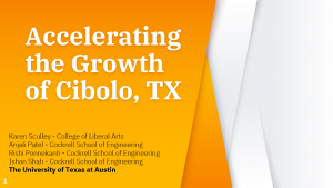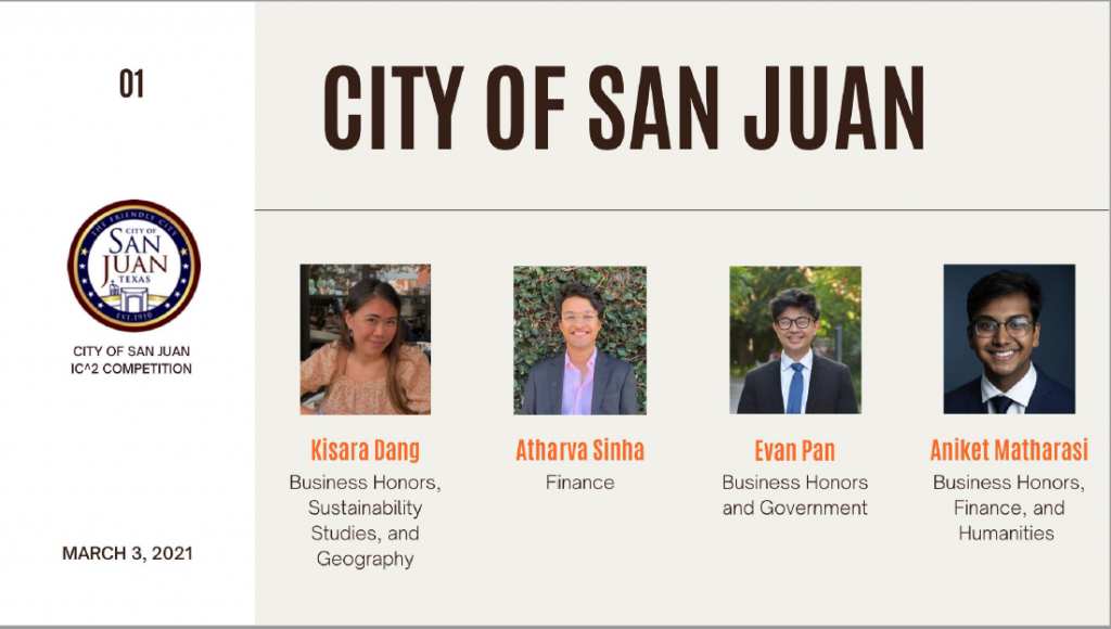 The idea for the competition, organized by UT Austin’s IC² Institute, grew from both student enthusiasm for previous IC² student “challenges” and from an aim of the institute to reach across the state to include diverse perspectives on community issues and economic development. IC², founded in 1977, is a research department that investigates issues facing communities outside of major urban areas.
