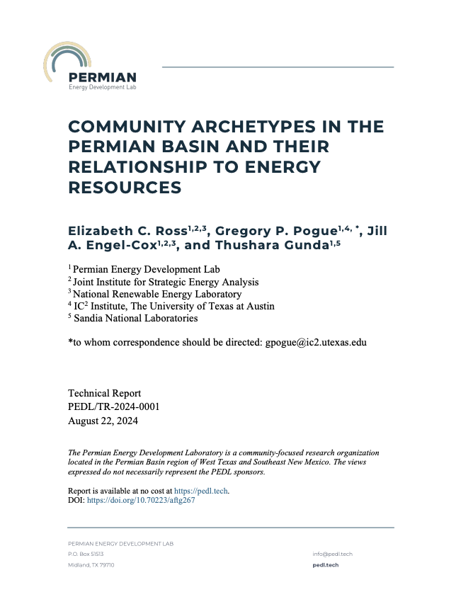 UPDATE: PEDL Report – “Community Archetypes in the Permian Basin and their Relationship to Energy Resources”
