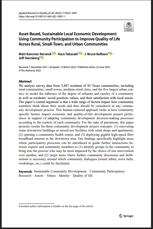 Asset-Based, Sustainable Local Economic Development: Using Community Participation to Improve Quality of Life Across Rural, Small-Town, and Urban Communities