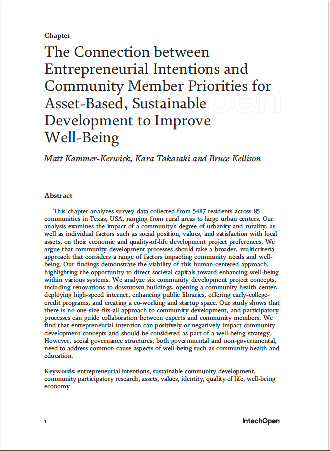 The Connection Between Entrepreneurial Intentions and Community Member Priorities for Asset-Based, Sustainable Development to Improve Well-Being