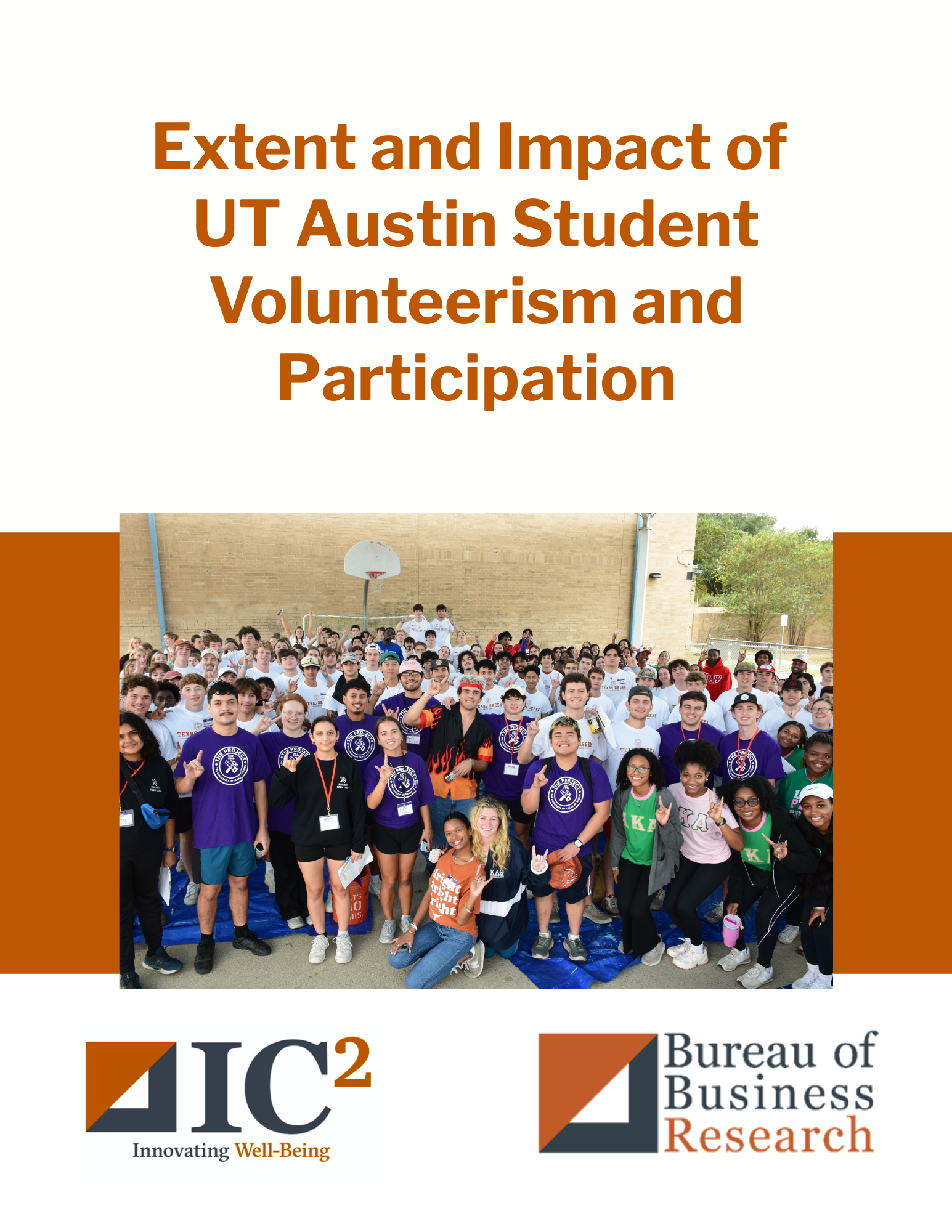 In the fall of 2024, the Division of Student Affairs set out to understand the full extent and impact of UT Austin student volunteerism and participation in a University club or organization. The Division partnered with the Bureau of Business Research (BBR) at the IC² Institute to conduct the research.